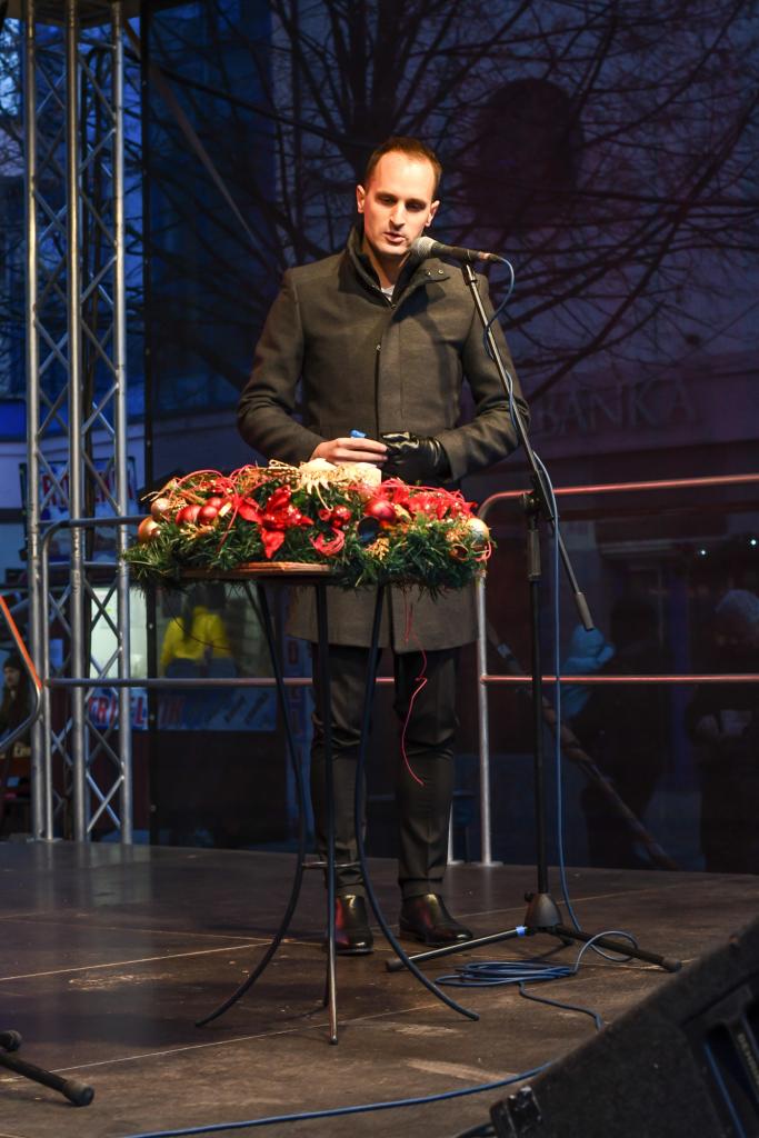 Primátor v príhovore návštevníkom porozprával o pôvode adventného venca, ktorý má byť vyhotovený do kruhu, čo znamená celistvosť, spojenie, jednotu. Spomenul tiež, že tretia sviečka na venci môže mať farbu ružovú, ktorá znamená priateľstvo. Ľudom pripomenul, v čom je to pravé čaro adventu a hodnoty, na ktoré by sme nemali zabúdať. Je to pokora, láska, priateľstvo a čas prežitý spolu s rodinou.