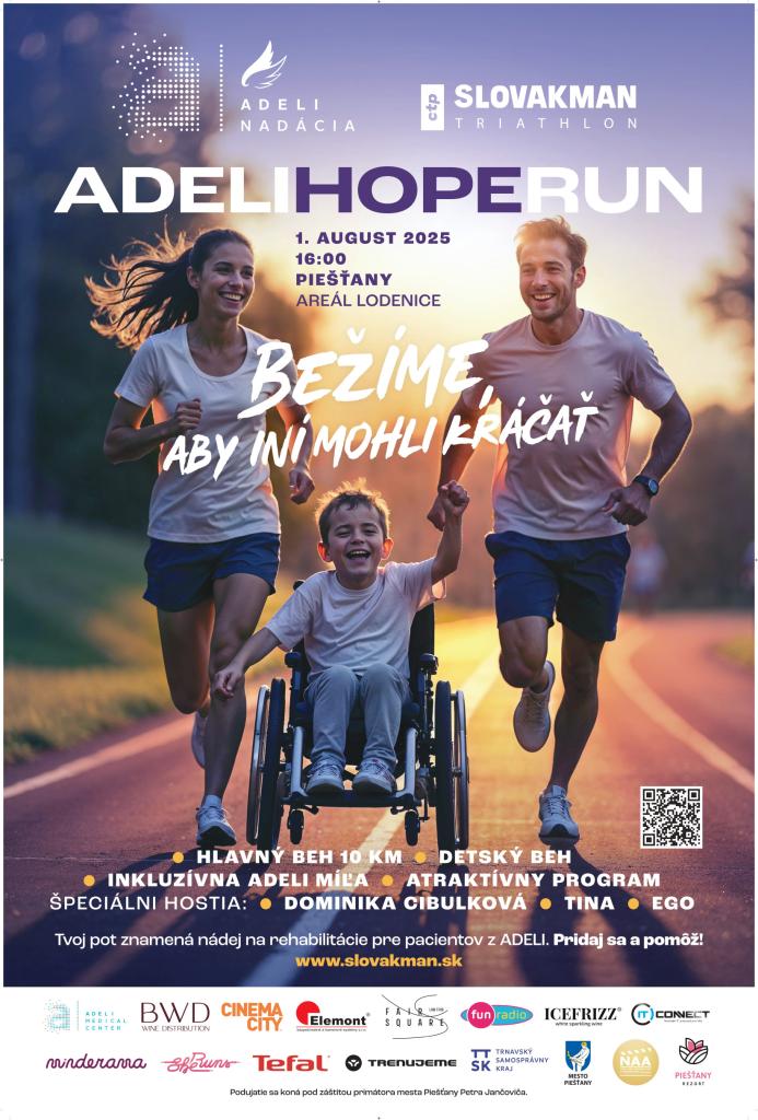 Prvý ročník charitatívneho podujatia ADELI HOPE RUN, ktorý organizuje Nadácia ADELI v spolupráci so Slovakman Triathlon, pozýva všetkých ľudí bez rozdielu – bežcov, rodiny, deti aj ľudí so zdravotným znevýhodnením – postaviť sa spoločne na štart pre tých, ktorí každý deň bojujú za návrat do života.