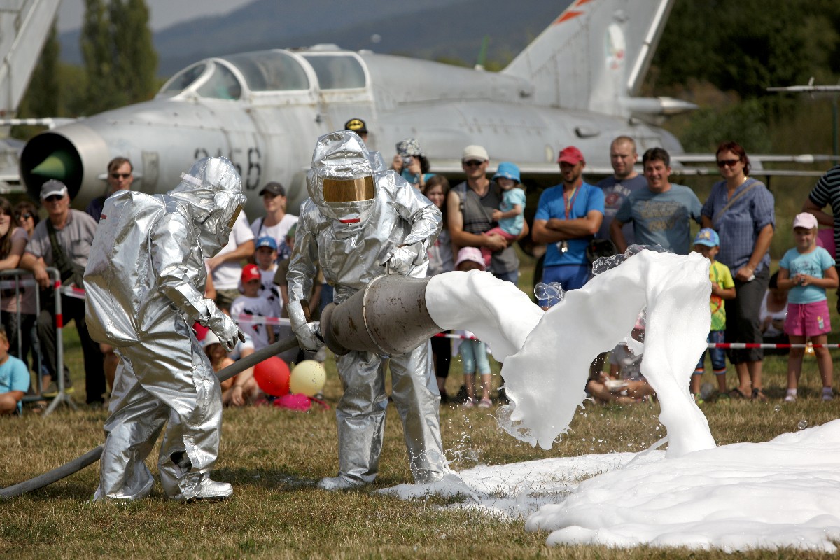 Veľký záujem bol aj o ukážky činnosti príslušníkov Okresného riaditeľstva Hasičského a záchranného zboru Piešťany, ktorí pre deti pripravili aj kúpeľ v hasičskej pene. Po opätovnom zoskoku parašutistov nasledovalo vystúpenie Piešťanského dixielandu a skupiny Váh River Band.