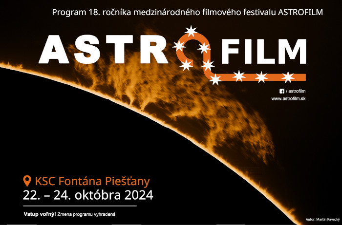 Festival Astrofilm 2024 sa bude konať v dňoch 22. – 24. októbra 2024 v Kultúrno-spoločenskom centre Fontána v Piešťanoch.