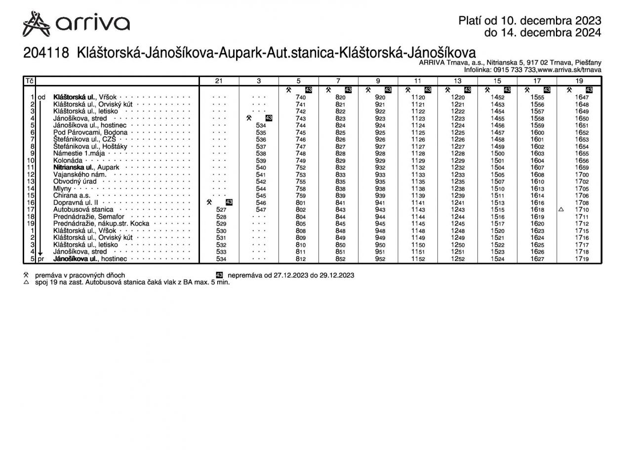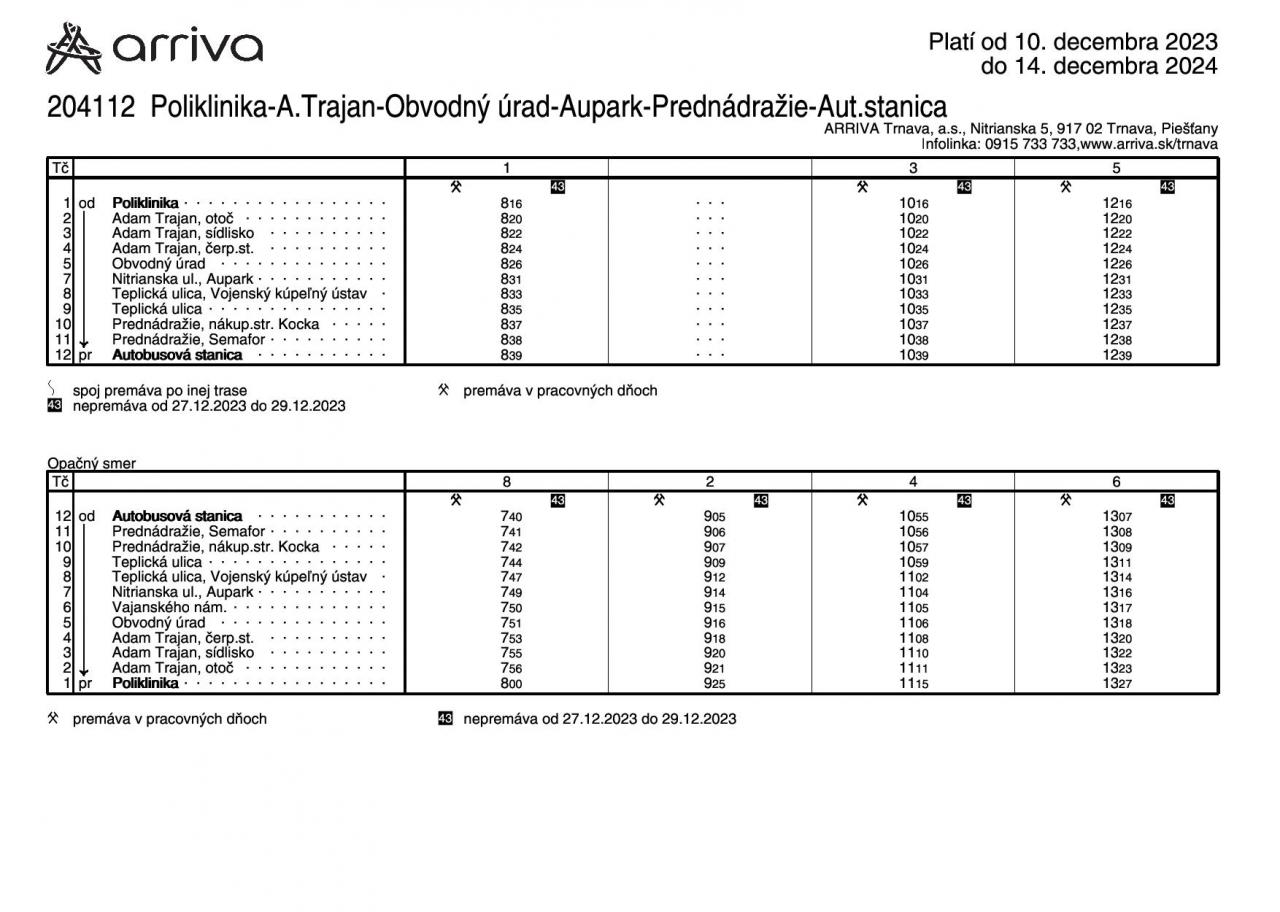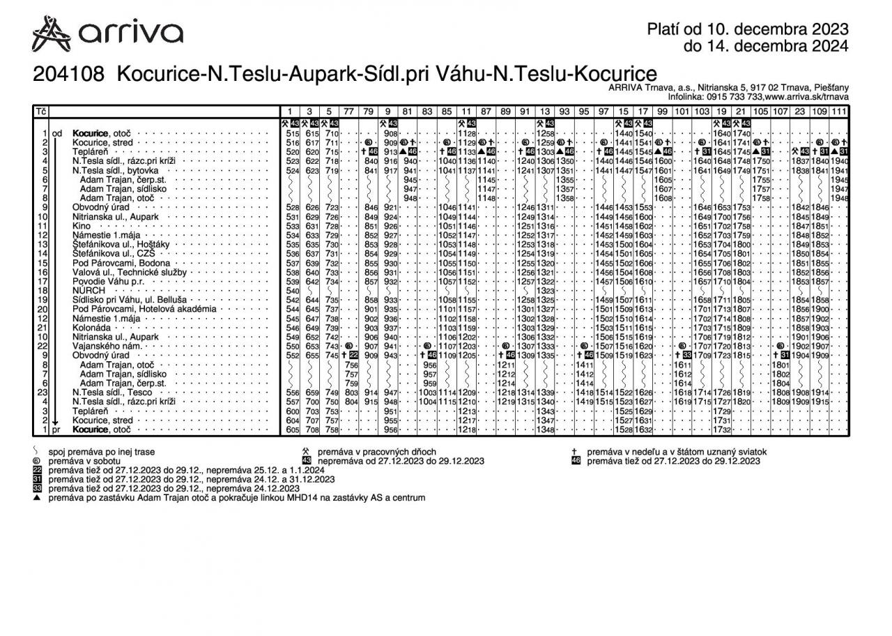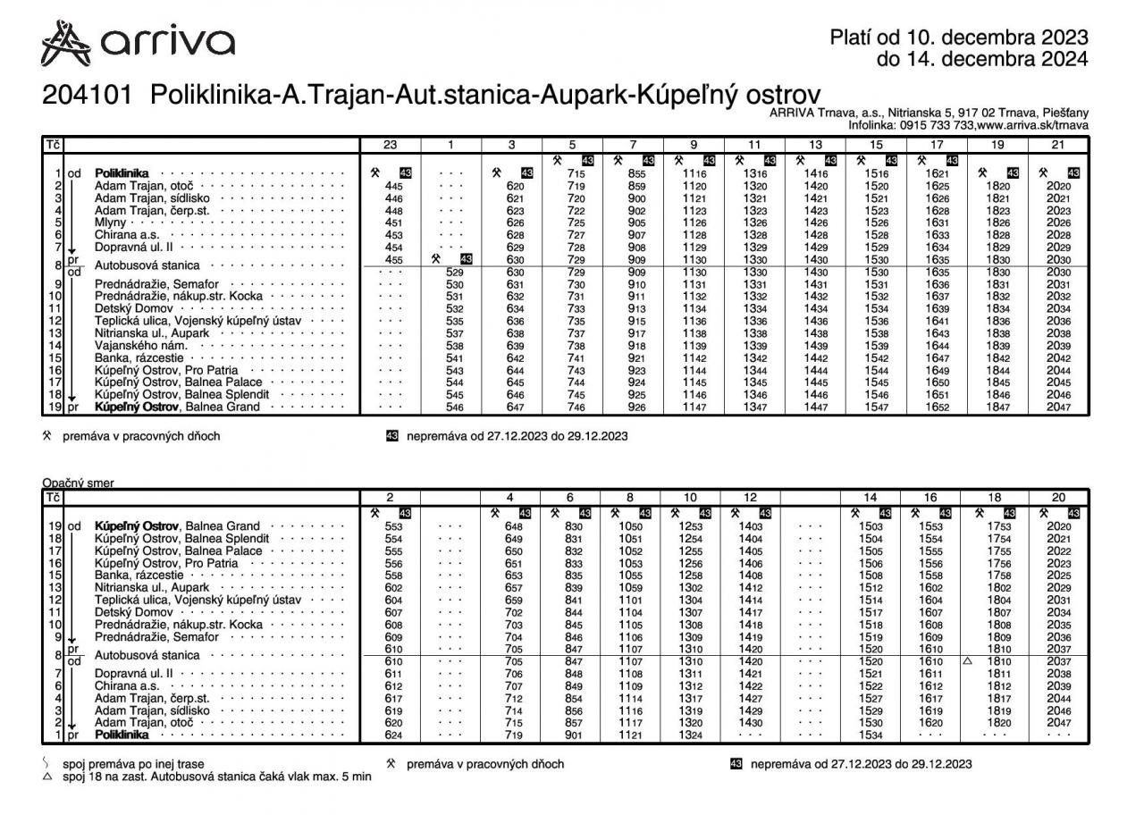 V aktualizovaných rozpisoch sú zohľadnené požiadavky cestujúcej verejnosti ako aj nadväznosť k vlakovým spojom. Zároveň sa ruší zachádzanie na zastávku NÚRCH z dôvodu problémov s otáčaním autobusu ako aj príliš malým počtom prepravených cestujúcich.