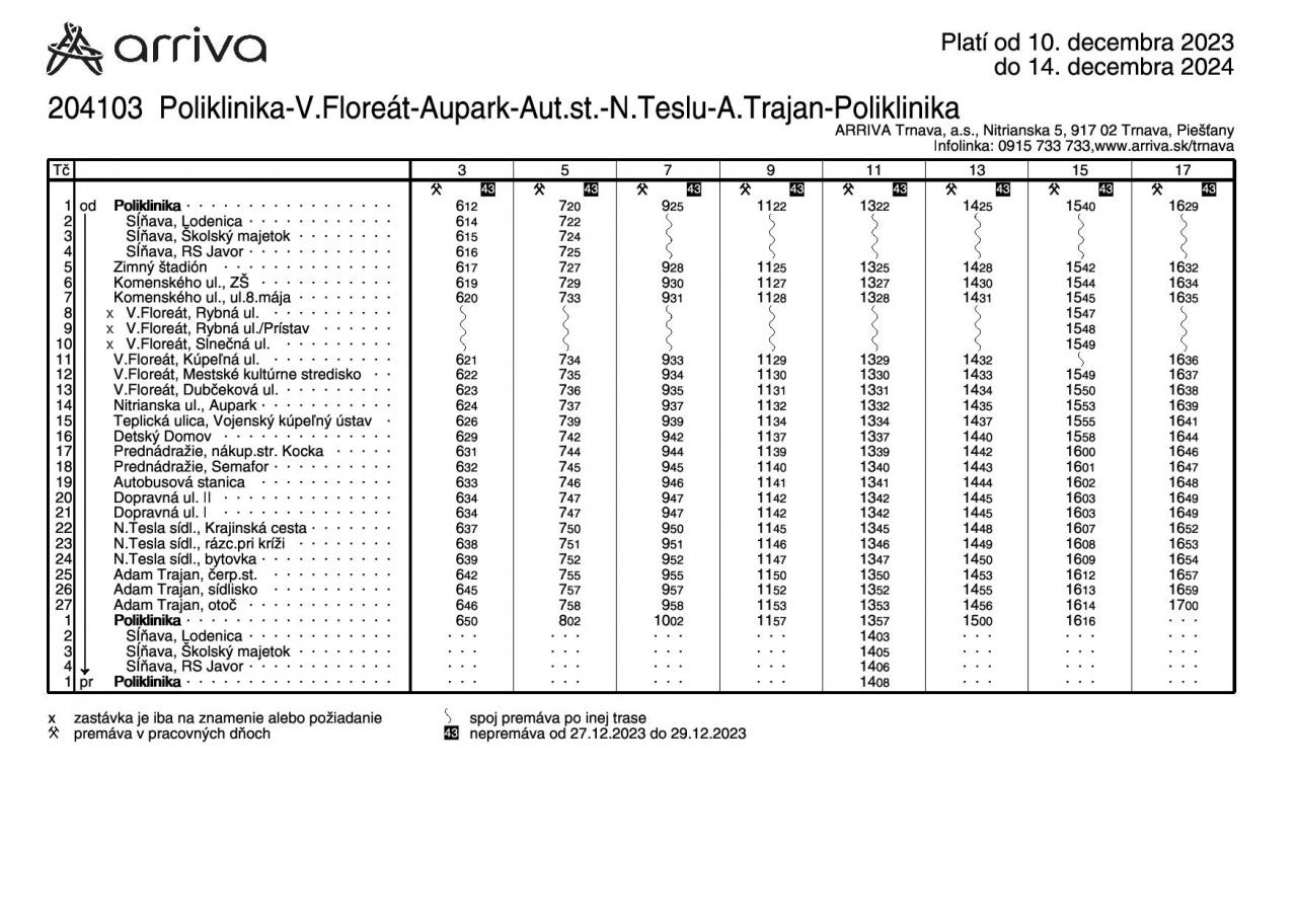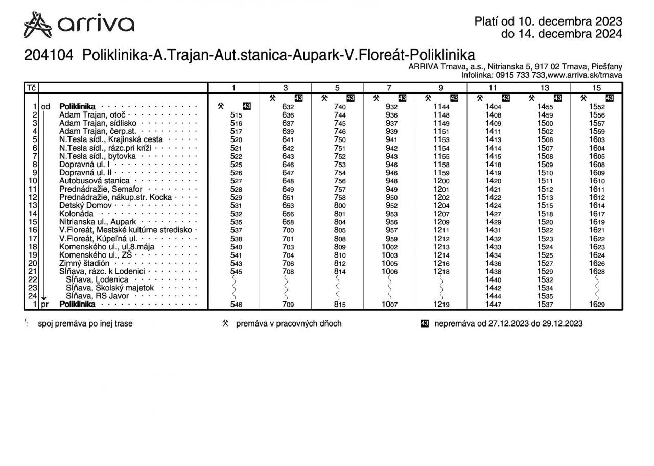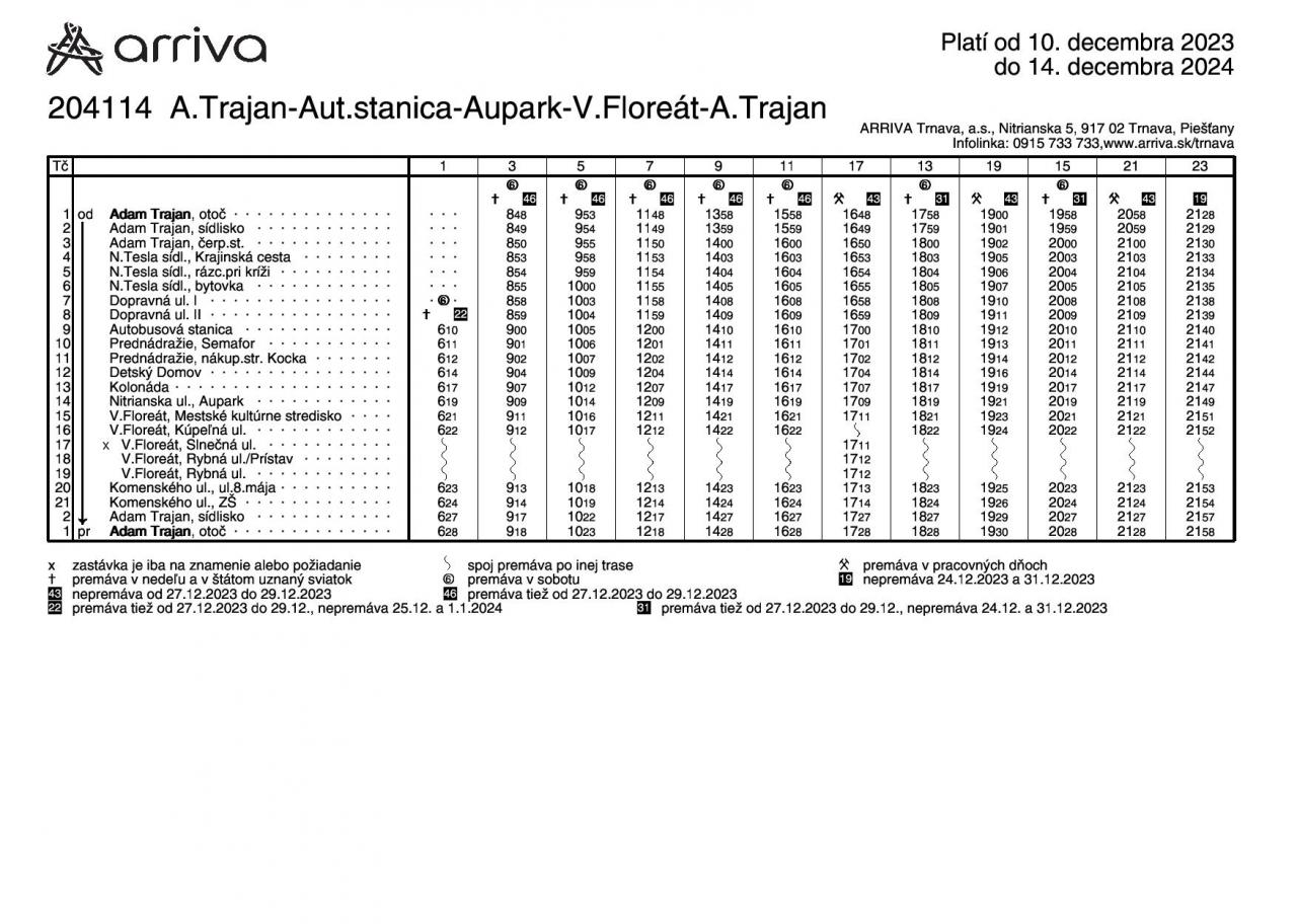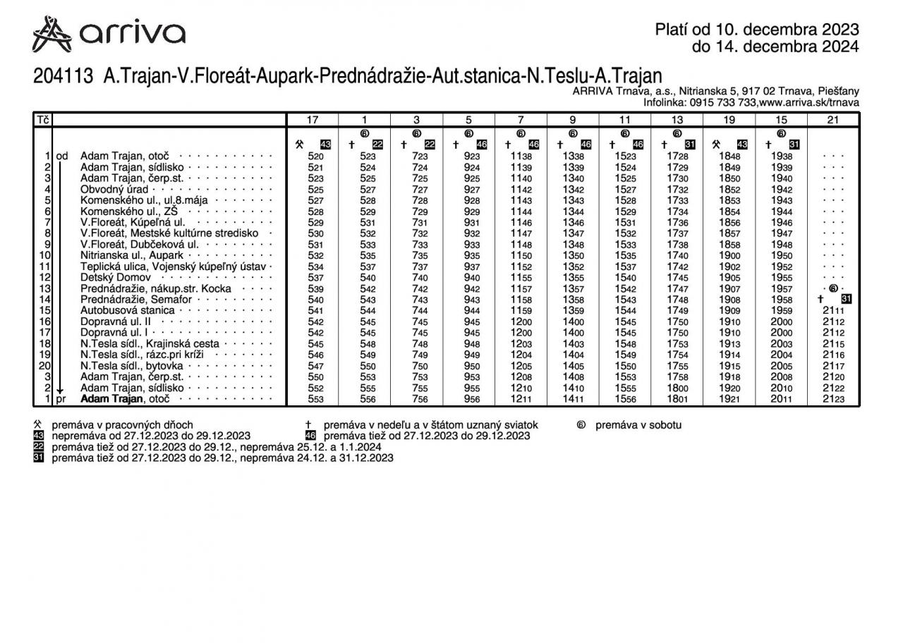 V aktualizovaných rozpisoch sú zohľadnené požiadavky cestujúcej verejnosti ako aj nadväznosť k vlakovým spojom. Zároveň sa ruší zachádzanie na zastávku NÚRCH z dôvodu problémov s otáčaním autobusu ako aj príliš malým počtom prepravených cestujúcich.