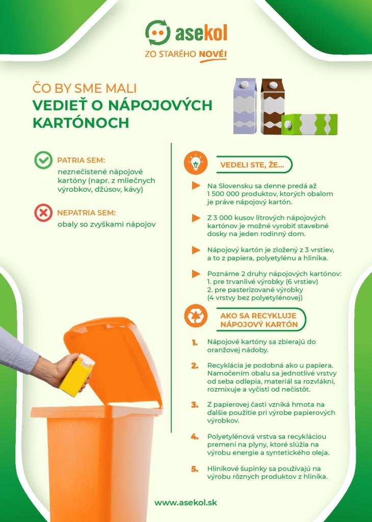 V Piešťanoch sa nápojové kartóny vhadzujú do žltých nádob určených na plasty. Dôležité je, aby boli prázdne a stlačené, čím sa zníži ich objem v kontajneri.
