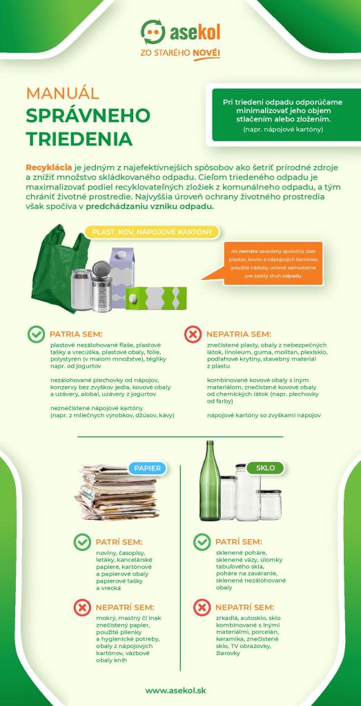 Správne triedenie odpadu znižuje množstvo odpadu ukladaného na skládky, šetrí prírodné zdroje a znižuje emisie skleníkových plynov. Zároveň pomáha stabilizovať náklady na odpadové hospodárstvo. Najvyššou úrovňou ochrany životného prostredia je síce predchádzanie vzniku odpadu, no to, čo už vyhodíme, by malo byť vytriedené správne. Aj malé rozhodnutia v domácnostiach majú v konečnom dôsledku veľký význam.