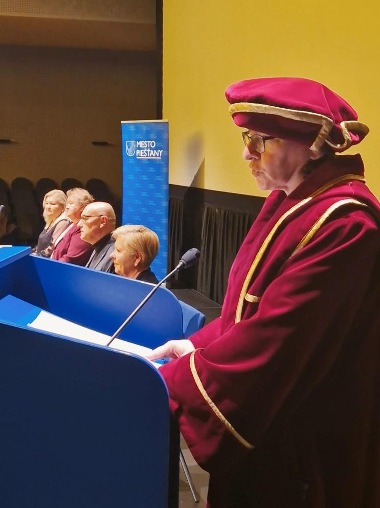 Mesto Piešťany na slávnosti zastupoval viceprimátor Mgr. Ján Krupa, ktorý odovzdal pozdrav od primátora mesta. Vo svojom príhovore poďakoval všetkým, ktorí sa zaslúžili o rozvoj Univerzity tretieho veku v Piešťanoch, a ocenil prínos seniorov pre komunitný život mesta: