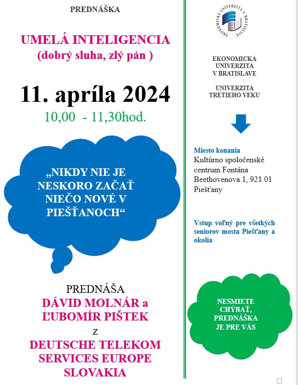 Nemusíte byť študentom Univerzity tretieho veku, aby ste sa zúčastnili na prednáške s názvom Umelá inteligencia (dobrý sluha, zlý pán).