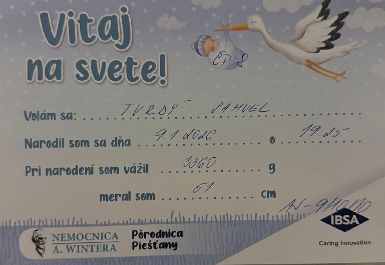 Prvý Piešťanec roku 2026 tak symbolicky nadväzuje na stovky detí, ktoré prišli na svet v uplynulom roku. Mesto Piešťany praje Samuelovi a jeho rodine veľa zdravia, radosti a šťastných chvíľ v ich spoločnom živote.