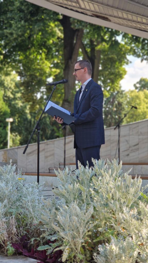 Primátor mesta Piešťany Peter Jančovič vo svojom príhovore zdôraznil, že odkaz Milana Rastislava Štefánika je aktuálnejší než kedykoľvek predtým: