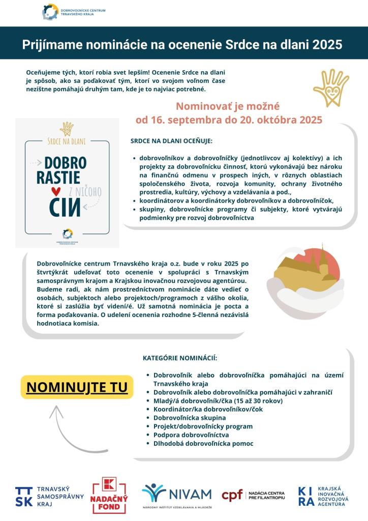 Nominácie je možné posielať od 16. septembra do 20. októbra 2025 prostredníctvom elektronického formulára na stránke vyhlasovateľa.