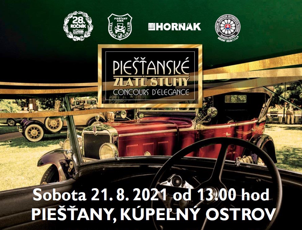 - 16:00 h výstava historických vozidiel účastníkov PIEŠŤANSKÝCH ZLATÝCH STÚH 2021 na Kúpeľnom ostrove v Piešťanoch