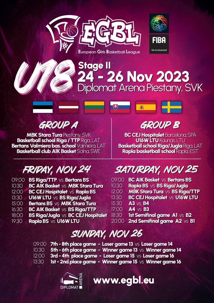 Od piatka do nedele si mládežnícke hráčky MBK Stará Turá zahrajú na palubovke v Piešťanoch Európsku ligu basketbalu kde nastúpia mužstvá z celej Európy ako napríklad: BS Riga z Lotyšska, CEJ Hospitalet zo španielskej Barcelony či Rapla school z Estónska. Príďte povzbudiť mladé hráčky Starej Turej. Podrobný rozpis zápasov nájdete na priloženom plagáte. Zápasy Starej Turej sa hrajú nasledovne: